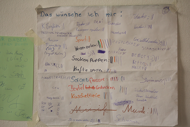 Wir freuen uns auch, wie eifrig schon Ideen für die nächsten Workshops gesammelt wurden. Und auch wenn etwas aufwendigere Ideen wie zum Beispiel Graffiti warten müssen, bis wir ausreichend Spenden haben, fallen keine Vorschläge hinten über. Nächstes Mal gibt es vermutlich erst mal weniger basteln und mehr Bewegung – und noch sagt der Wetterbericht einen sonnigen Sonntag voraus. Wehe das ändert sich!