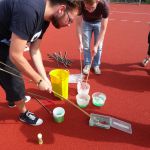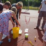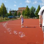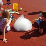 Diesen Sonntag haben wir wie gewohnt mit einem leckeren Frühstück in großer Runde begonnen. Zwar waren heute weniger Kids da als sonst, das hat dem Spaß aber nicht geschadet. Als alle gestärkt waren, ging es direkt raus in die Sonne. Heute stand der Seifenblasen-Workshop an und die Kleinen waren begeistert von den tollen Kreationen. Riesengroße Seifenblasen oder auch ganz viele kleine, für jeden war etwas dabei. Wenn man die Hände in die Seifenlauge getunkt hatte, konnte man die Seifenblasen sogar ohne Hilfsmittel mit bloßen Händen erzeugen, ob da Zauberei im Spiel ist? Aber auch das Aufschäumen der Lauge durch Hineinpusten hat für Spaß gesorgt. Zum Schluss war so viel Schaum übrig, dass es fast zu einer kleinen Schaumschlacht ausgeartet ist. Bei dem sommerlichen Wetter ist das aber auch kein Wunder und eine willkommene Abkühlung! Danach haben wir noch einige Runden „Werwolf“ gespielt und den Escu-Sonntag entspannt ausklingen lassen.