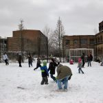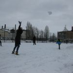 Die Kids ließen sich auf unsere Idee ein, auch wenn der unberührte Schnee auf dem Sportplatz des HOTs immer wieder flüsterte: „Come on and get me!“ Den sehnsüchtigen Blicken und Bitten der Anwesenden konnten wir einfach nicht wiederstehen. Wie auch? Was spricht schon gegen eine nasskalte, schneeweiße Schneeballschlacht?
