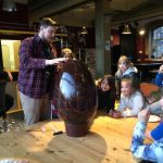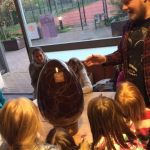 Wir von Escuelita waren sehr stolz, dass wir das Geheimnis bis zum Ende unseres Workshops geheim halten konnten, sonst wäre es ja auch kein gutes Geheimnis gewesen. Nach unserem gemeinsamen Abendessen, bei der das Kochteam in höchsten Tönen gelobt wurde, startete eine knifflige Schatzsuche. Die Kids wurden in Gruppen aufgeteilt und jede Gruppe musste unterschiedliche Puzzleteile finden. Klingt einfach? Es mussten aber schwierige Rätsel gelöst werden, um an die Puzzleteile zu gelangen, die selbst die Betreuer*innen an ihre Grenzen brachten. Nachdem alle Teile gefunden und zu einem Bild zusammengelegt wurden, offenbarte sich ein wunderschönes goldenes Ei. Goldene Eier sind zwar schön, nur Essen kann man die leider nicht. Ein Ei aus Schokolade ist da schon viel besser und das Geheimnis um den mysteriösen Karton konnte endlich gelüftete werden: Ein wirklich sehr großes Ei aus feinster Schokolade, bei dem nicht nur die Kinder weite Augen machten. Vielen Dank an dieser Stelle an Leonidas Magdeburg für diese großzügige und leckere Spende! Das Ei war so massiv, dass wir es mit einem Hammer aufbrechen mussten und sich jedes Kind ein Stück mit nach Hause nehmen konnte. Ein langer, aber wunderschöner Workshop war nun zu Ende und auch die Betreuer*innen konnte sich endlich mit einem Stück Schokolade belohnen!