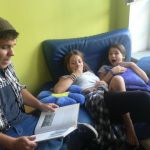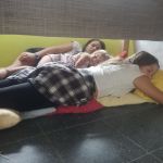 Eingeleitet haben wir diese Programmänderung mit einer Märchenstunde. Dazu hat sich Sascha ein paar Märchenbücher aus der Stadtbibliothek Magdeburg geschnappt und zehn Kinder nach einem fröhlichem Spiel draußen in den Bastelraum der ersten Etage des HOTs dazu eingeladen, den Geschichten zu lauschen. Währenddessen haben es sich die Kiddies in den Sesseln und unter dem Tisch bequem gemacht. Den Essenspart gestalteten wir am Ende des Workshops mit einem gemeinsamen Abendbrot. Leckere Schnittchen und Salat.