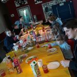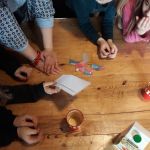 Unser Workshop hatte sich diesmal das Thema „Piratentum“ auf die Fahne geschrieben. Doch bereits vor der Henkersmahlzeit, die sich aus den leckeren unverpackten Lebensmitteln aus „Frau Ernas loser Lebensmittelpunkt“ sowie den Erzeugnissen aus dem Bio Supermarkt zusammensetzte, gab es schon die ersten Spiele: Pantomimisch mussten die Teamenden ihre Namen vorstellen, wobei sich die eine oder andere Person von uns zum Affen machte. Anschließend lernten wir, aus welchen Teilen der Welt die Frühstückszutaten an unseren Tisch gelangten. Dabei wurden die Geografiekenntnisse der Kids/Jugendlichen und der Teamenden ordentlich aufgefrischt.